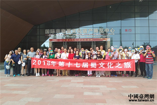 參訪團(tuán)一行在非遺博覽園合影。(圖片來(lái)源:成都市臺(tái)辦)