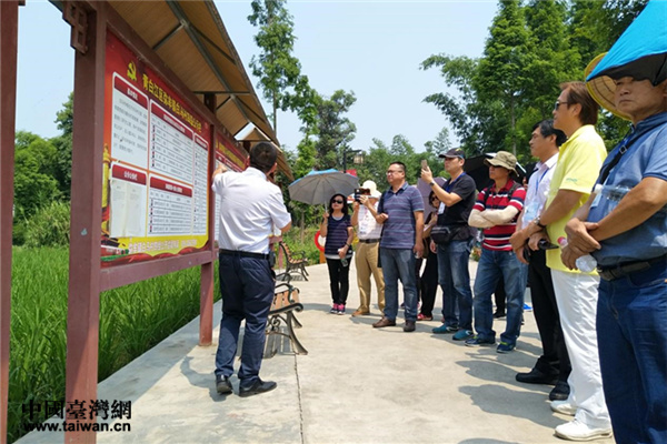 青白江白馬村聽(tīng)取鄉(xiāng)村發(fā)展治理情況介紹。(圖片來(lái)源:成都市臺(tái)辦)