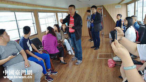 泛舟湖上,聽取講解。(圖片來源:沈陽市臺辦)