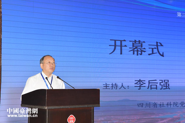 四川省社科院黨委書記、四川省臺灣研究中心主任主持李后強主持開幕式。(圖片來源:四川省臺辦)