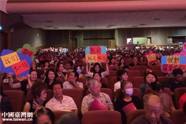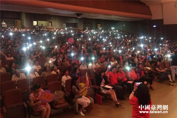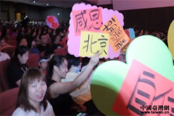 演出現(xiàn)場有十幾位觀眾舉著“感恩北京朝陽情”、“悅動屏東媳婦心”等自制看板,喝采叫好聲持續(xù)不斷,她們對記者說:“你們都是娘家人!彼齻儚拇箨懠薜疆數,有的人已經在臺灣生活20多年,聽說大陸親人來屏東演出,讓她們感到特別親切,自發(fā)組織起來給大陸親人捧場。