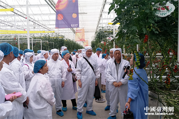 參觀平涼市海升集團——現代設施農業。(圖片來源:甘肅省臺辦)