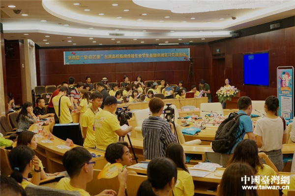 中國臺灣網(wǎng)7月4日長沙訊 7月3日上午,“第四屆臺灣高校新聞傳播專業(yè)學(xué)生暑期來湘‘愛·在芒果’實習(xí)交流活動”啟動儀式在湖南廣播電視臺舉行。來自臺灣政治大學(xué)、世新大學(xué)等臺灣22所高校新聞傳播專業(yè)的50名學(xué)生,現(xiàn)場被分配到湖南廣播電視臺旗下10個頻道及單位,接下來他們將在湖南廣播電視臺進(jìn)行近一個月的跟班實習(xí)交流。