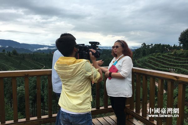 臺(tái)灣民意代表廖國(guó)棟服務(wù)處副主任王秋蘭接受媒體采訪 (圖片來(lái)源:四川省臺(tái)辦)