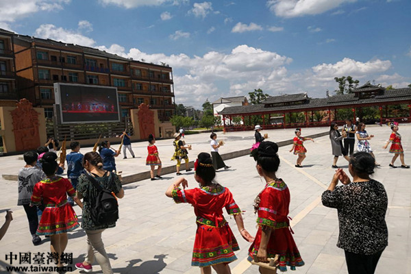 在花山苗族鄉(xiāng),參訪團(tuán)一行先后到花山苗族鄉(xiāng)同心展覽館、苗族風(fēng)情園、苗鄉(xiāng)廣場(chǎng)、苗族圖騰廣場(chǎng)和花山民族中學(xué)等地參觀考察,對(duì)花山苗族鄉(xiāng)的苗族文化傳承與發(fā)展表示充分肯定。考察期間,苗鄉(xiāng)姑娘、小伙身著盛裝,斟滿美酒、載歌載舞對(duì)遠(yuǎn)道而來(lái)的客人表示熱烈的歡迎。臺(tái)灣同胞也加入到熱情洋溢的歌舞中,喝美酒、學(xué)苗語(yǔ)、跳苗舞,兩地同胞敞開(kāi)心扉真情交流,達(dá)到了思想交融、靈魂碰撞。