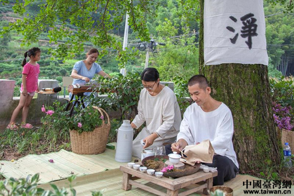 中國臺灣網8月2日桐城訊 7月26日清晨,安徽省桐城市唐灣鎮長嶺村和張樓村村民到銀杏樹下,在初發的晨曦中展開一場關于“茶”的心靈對話。桐城市首屆兩岸茶藝師茶道茶藝交流會在這里舉行。