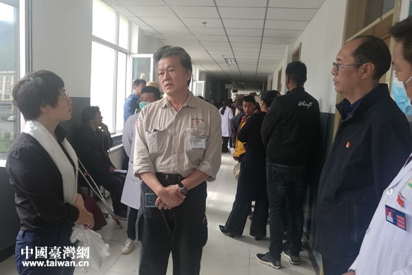 青海生臺辦副主任應秀麗與臺灣路竹會義診醫師團醫生交流。(圖片來源:青海省臺辦)