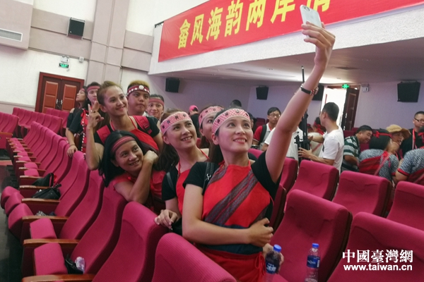 臺灣少數(shù)民族演出結(jié)束后自拍留念。(中國臺灣網(wǎng) 張露露 攝)