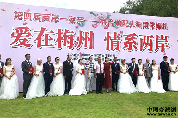 愛在梅州,情系兩岸,梅臺婚配夫妻集體婚禮。(圖片來源:梅州市梅江區臺辦)