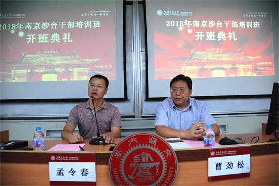 在開班儀式上,南京市臺辦主任曹勁松作了動員講話。他要求參訓人員提高認識,明確培訓的必要性;學以致用,強化培訓的實效性;從嚴自律,增強學習的自覺性,高標準完成培訓學習任務。