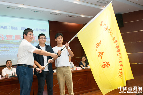 中國臺灣網8月23日銅陵訊 8月21日上午,第二屆海峽兩岸(銅陵)銅雕藝術大學生實訓夏令營在安徽省銅陵市啟動,并舉行銅臺兩地五所高校大學生見面會。省臺辦副主任蘇青,市領導單向前、葉萍、洪維助,銅陵職業(yè)技術學院書記李業(yè)群等參加啟動儀式。市委副書記、市委統(tǒng)戰(zhàn)部部長單向前為夏令營授旗。