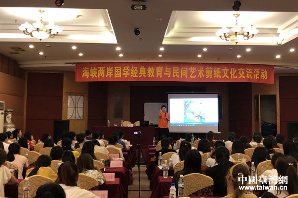 中國臺灣網8月27日贛州訊 8月18日至19日,海峽兩岸國學經典教育民間藝術剪紙交流活動在贛州舉行。教育部中國人生科學學會副會長、中國人生科學學會海峽少兒教育專業委員會理事長陳月仙,中國人生科學學會海峽少兒教育專業委員會常務副理事長姚兵岳,中國高級美術工藝師、“北京剪紙”非物質文化遺產代表性傳承人、中國人生科學學會海峽少兒教育專業委員會特聘專家徐陽,中國人生科學學會海峽少兒教育專業委員會辦公室主任崔秀杰,臺灣民間國學推廣與剪紙傳人蕭素娥等嘉賓應邀參加了本次活動,并現場傳授剪紙技藝。來自贛州、崇義的幼兒教師和小學教師共計150余人參加了培訓。