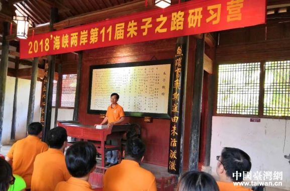 中國(guó)臺(tái)灣網(wǎng)8月28日百色訊 追尋朱子足跡,感受圣賢魅力。近日,2018海峽兩岸第11屆朱子之路研習(xí)營(yíng)活動(dòng)走進(jìn)鵝湖書院,來(lái)自臺(tái)灣師范大學(xué)、臺(tái)灣中央大學(xué)、臺(tái)灣大學(xué)、臺(tái)灣志道書院以及福建師范大學(xué)、廈門大學(xué)、南京大學(xué)、廣西大學(xué)等高校等45名師生開(kāi)展了研習(xí)討論。此次活動(dòng)由臺(tái)灣師范大學(xué)東亞文化與漢學(xué)研究中心主任張將昆教授擔(dān)任研習(xí)營(yíng)團(tuán)長(zhǎng),閩北朱子后裔聯(lián)誼會(huì)副會(huì)長(zhǎng)朱美珍,廣西大學(xué)文學(xué)院黨委書記、博導(dǎo)李寅生等參加活動(dòng),鵝湖書院風(fēng)景名勝區(qū)管委會(huì)主任張賽華接待了研習(xí)團(tuán)一行。