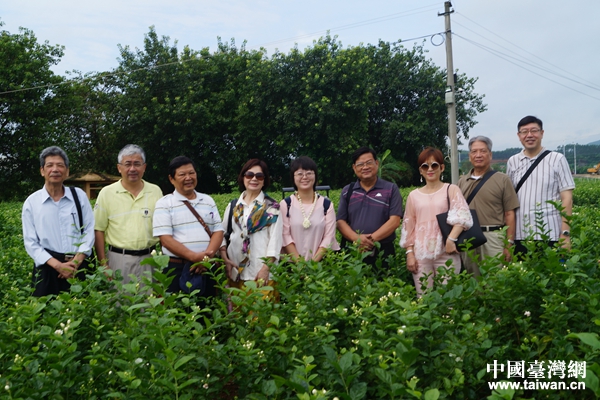 臺(tái)灣制茶工業(yè)同業(yè)公會(huì)一行考察橫縣中華茉莉園。(圖片來(lái)源:廣西南寧市橫縣臺(tái)辦)
