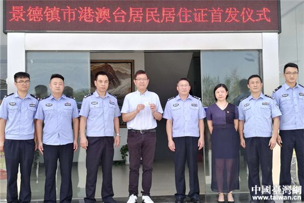 9月12日上午,景德鎮市港澳臺居民居住證首發儀式在陶瓷工業園分局園區派出所舉行,景德鎮市公安局黨委委員、副局長郭景洪向來自臺灣地區的居民代表發放了景德鎮市首張港澳臺居民居住證。目前,首批受理的22張港澳臺居民居住證已制作完成,已發往各受理點。