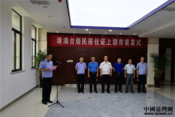 2018年9月12日在信州公安分局戶政大廳舉辦港澳臺居民居住證上饒市首發式活動。市委臺辦主任王旻,副主任姜志民、市公安局黨委委員、副局長戴峰,以及市委外僑辦、信州區、信州公安分局等部門的相關領導,港澳臺居民和新聞媒體記者共計30余人參加了首發儀式。首發儀式上,莊秋萬、楊霞等六名港澳臺居民代表依次到業務窗口通過提交《證件領取憑條》、核驗指紋,順利地完成了領證手續。