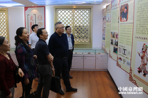 武漢市臺辦參觀了解學(xué)校皮影特色課程。(武漢市臺辦 王煉 攝)