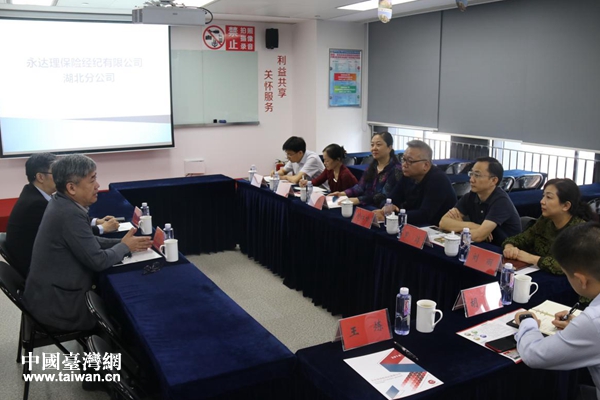 武漢市臺辦在永達(dá)理保險(xiǎn)公司與企業(yè)負(fù)責(zé)人溝通交流。(武漢市臺辦 王煉 攝)