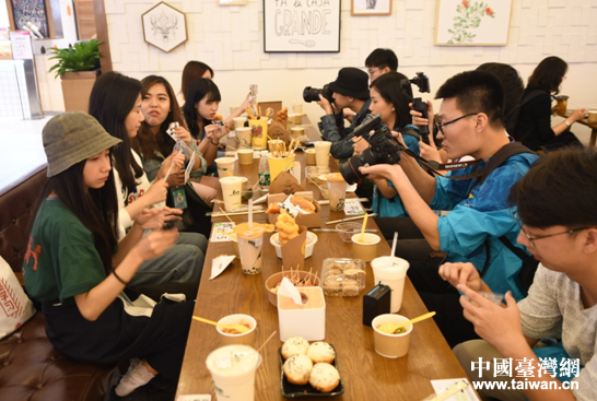 采訪團(tuán)在群光廣場享受臺灣美食與成都名小吃。(圖片來源:四川省臺辦)
