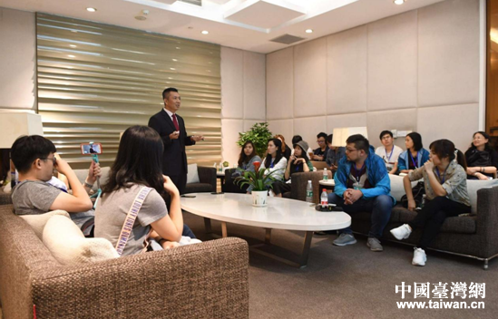 臺商尤榮川向采訪團(tuán)介紹企業(yè)精致服務(wù)理念。(圖片來源:四川省臺辦)
