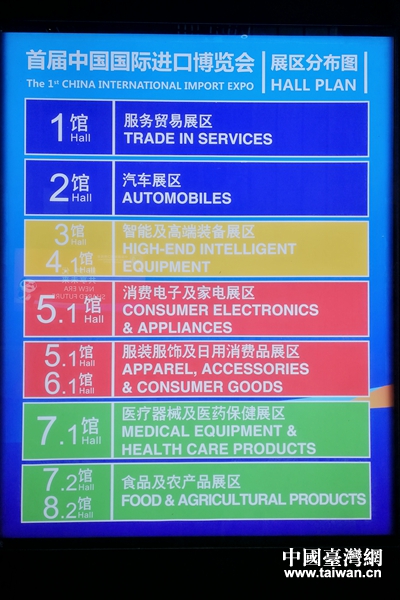 首屆中國國際進口博覽會現場展區展臺。(圖片來源:上海市臺辦)