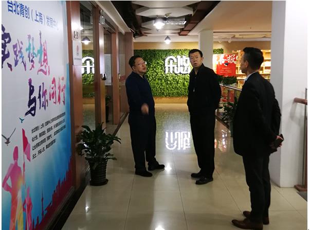 張燦副主任(中)參觀臺北青創(上海)發展中心。(來源:云南省臺辦肖崇捌攝)