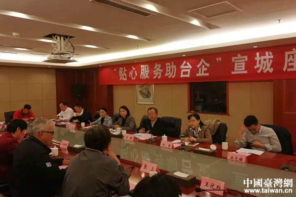 中國臺(tái)灣網(wǎng)11月19日合肥訊 為深入貫徹黨的十九大精神和習(xí)近平總書記關(guān)于對(duì)臺(tái)工作重要論述,進(jìn)一步推動(dòng)國家“31條”和安徽省“55條”惠臺(tái)措施貫徹落實(shí),10月30日至11月8日,安徽省臺(tái)辦會(huì)同省發(fā)改委、省公安廳、省人社廳、省環(huán)保廳、省高院、省科技廳和合肥海關(guān)等8家省臺(tái)商權(quán)益保障工作聯(lián)席會(huì)議成員單位,深入合肥、馬鞍山、宣城、蚌埠、淮北等5市開展“貼心服務(wù)助臺(tái)企”活動(dòng),共走訪臺(tái)資企業(yè)20余家,發(fā)放宣傳材料230余冊(cè),召開5場(chǎng)座談會(huì),與57位臺(tái)商和臺(tái)資企業(yè)負(fù)責(zé)人進(jìn)行了交流互動(dòng),累計(jì)征求意見、建議和現(xiàn)場(chǎng)解答咨詢50余條。