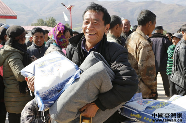為彝族貧困群眾發(fā)放冬令物資現(xiàn)場。(圖片來源:什邡市臺辦)