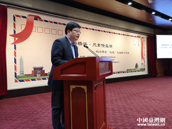 2018年12月15日,“鴻雁架橋梁·尺素傳真情——紀念兩岸‘三通’之通郵十周年”活動12月15日在北京臺灣會館舉行。活動由北京市臺灣同胞聯誼會和中國郵政集團北京市分公司聯合主辦,通過發行兩岸通郵十周年紀念郵票和郵封、舉行海峽兩岸通郵歷史展覽等紀念活動和郵史展覽講述兩岸通郵歷史故事,娓娓道來濃濃的兩岸親情,紀念兩岸通郵十周年。