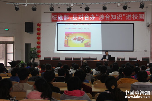 安陽市滑縣臺辦聯(lián)合縣委黨校在滑縣英民中學和道口鎮(zhèn)第一初級中學開展了“涉臺知識進校園”活動。活動中,滑縣縣委黨校孫貴卿老師為同學們集中講授了相關(guān)涉臺知識,使600余名中小學生更直觀地認識和了解了臺灣問題的由來、黨中央的對臺方針政策和兩岸關(guān)系發(fā)展現(xiàn)狀。