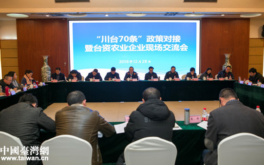 中國臺灣網12月29日成都訊 12月27日至28日,為進一步推動《關于促進川臺經濟文化交流合作的若干措施》(簡稱“川臺70條”)落地落實,助力臺商臺企參與鄉村振興,四川省臺辦在成都市郫都區召開“川臺70條”政策對接暨臺資農業企業現場交流會。省級相關部門、部分市州臺辦和全省2個國家級“臺灣農民創業園”、20家省級“川臺農業合作示范基地”企業負責人參加活動。