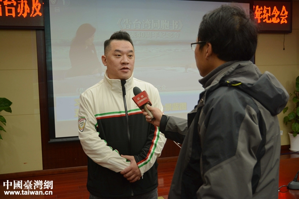 南昌市臺胞臺屬聯誼會理事長章躍進接受媒體采訪。(圖片來源:江西省臺辦秘書處)