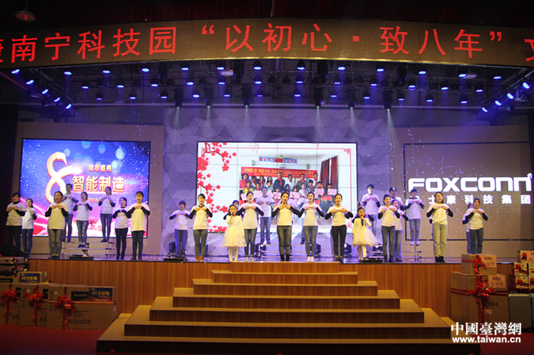 南寧富桂精密工業有限公司舉辦“以初心,致8年”文藝晚會暨富士康南寧科技園8周年盛典。(圖片來源:廣西南寧富桂精密工業有限公司)