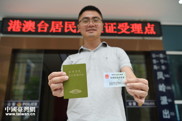 2018年9月1日,南寧市臺灣同胞投資企業(yè)協(xié)會會長周代祥在南寧領到全國第一張臺灣居民居住證。(圖片來源:廣西臺辦)