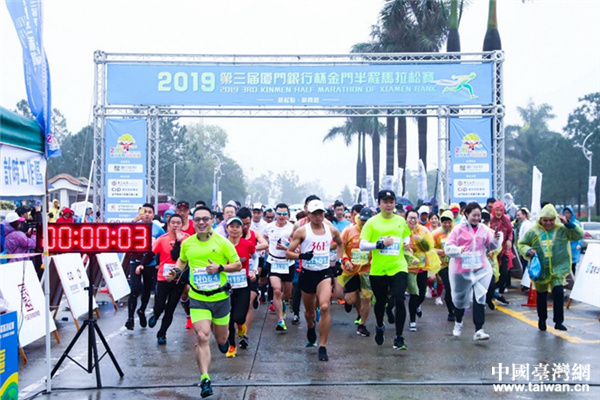上午8時,金門縣縣長楊鎮浯,廈門銀行董事長吳世群、行長洪主民等一起為比賽鳴槍。槍聲一響,來自北京、福建、重慶、四川、臺灣等地的參賽選手進入了馬拉松半程比賽。
