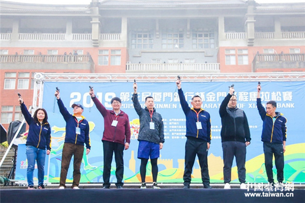 金門縣縣長楊鎮浯,廈門銀行董事長吳世群、行長洪主民等一起為比賽鳴槍。(圖片來源:廈門銀行)