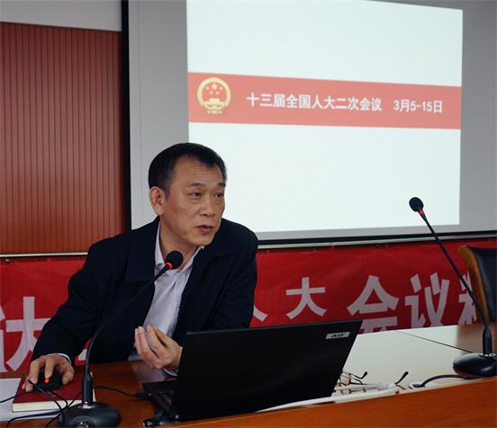 鄒振球從會(huì)議概況、對(duì)臺(tái)工作、人大臺(tái)灣代表團(tuán)活動(dòng)等方面,對(duì)全國(guó)“兩會(huì)”特別是十三屆全國(guó)人大二次會(huì)議情況作了詳細(xì)介紹。他結(jié)合參會(huì)經(jīng)歷,重點(diǎn)介紹了中共中央政治局常委、全國(guó)政協(xié)主席汪洋,國(guó)務(wù)委員、外交部部長(zhǎng)王毅,中央臺(tái)辦、國(guó)務(wù)院臺(tái)辦主任劉結(jié)一參加臺(tái)灣代表團(tuán)審議時(shí)的情況。他還生動(dòng)地講述了自己在“兩會(huì)”期間接受媒體采訪,特別是鳳凰衛(wèi)視直播專訪時(shí)的情景。此外,關(guān)于嚴(yán)肅會(huì)紀(jì)、代表風(fēng)采等會(huì)議花絮的介紹,也讓大家從多角度了解了“兩會(huì)”實(shí)況。鄒振球指出,這次全國(guó)“兩會(huì)”是在新中國(guó)成立70周年,在決勝全面建成小康社會(huì)、實(shí)現(xiàn)第一個(gè)百年奮斗目標(biāo)的關(guān)鍵時(shí)期召開的一次十分重要的會(huì)議,大家要認(rèn)真學(xué)習(xí)領(lǐng)會(huì)貫徹習(xí)近平總書記在全國(guó)“兩會(huì)”上的重要講話和全國(guó)“兩會(huì)”精神,切實(shí)把思想和行動(dòng)統(tǒng)一到黨中央決策部署要求上來,為促進(jìn)兩岸經(jīng)濟(jì)社會(huì)融合發(fā)展和兩岸關(guān)系和平發(fā)展作出應(yīng)有的貢獻(xiàn)。劉忠斌重點(diǎn)介紹了人大江蘇代表團(tuán)的主要活動(dòng)情況,以及該團(tuán)學(xué)習(xí)習(xí)近平總書記參加內(nèi)蒙古、甘肅、河南代表團(tuán)審議時(shí)重要講話精神的情況。