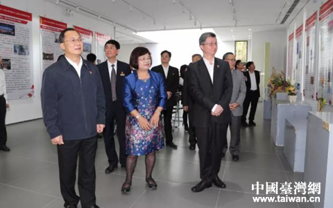 廣州市委臺辦主任曾衛東同志陪同市委常委、統戰部長盧一先同志和臺灣苗栗縣大湖鄉鄉長胡娘妹觀看展覽。(圖片來源:廣州市臺辦宣傳交流處)