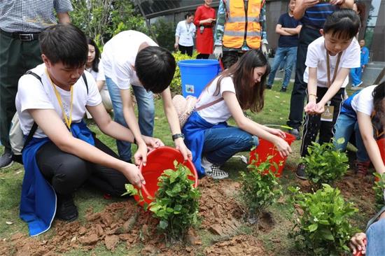 歡迎儀式后,在劇院綜藝廳西側(cè)的綠地上,兩岸青少年分組合作,共同栽種了茉莉和雪松,為今天的美好相遇留下了芬芳而長青的紀(jì)念。