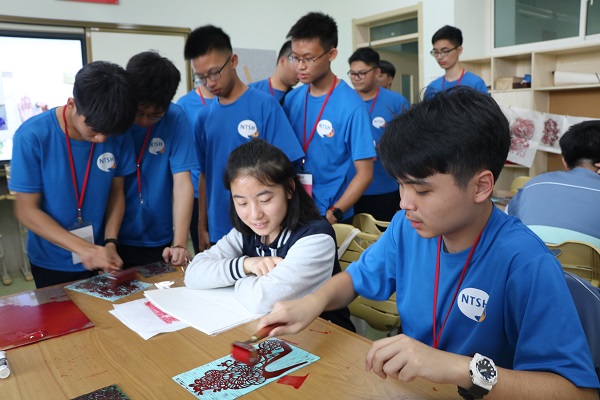 在青島第九中學,兩地的同學結(jié)成學伴,臺東縣高中的同學們走入教室,體驗基礎(chǔ)年級的課堂教學,通過互換觀點、開拓思維,大家都深感受益匪淺。在青島第六中學,兩地學生一起手繪文化衫,走入美術(shù)課堂進行體驗,親歷兩地高中教育方式的不同。聯(lián)誼演出中,臺東縣高中的學生老師們穿上自己參與手繪的文化衫與六中同學合影,一致表示要好好收藏這件象征著青臺兩地友誼的衣服。