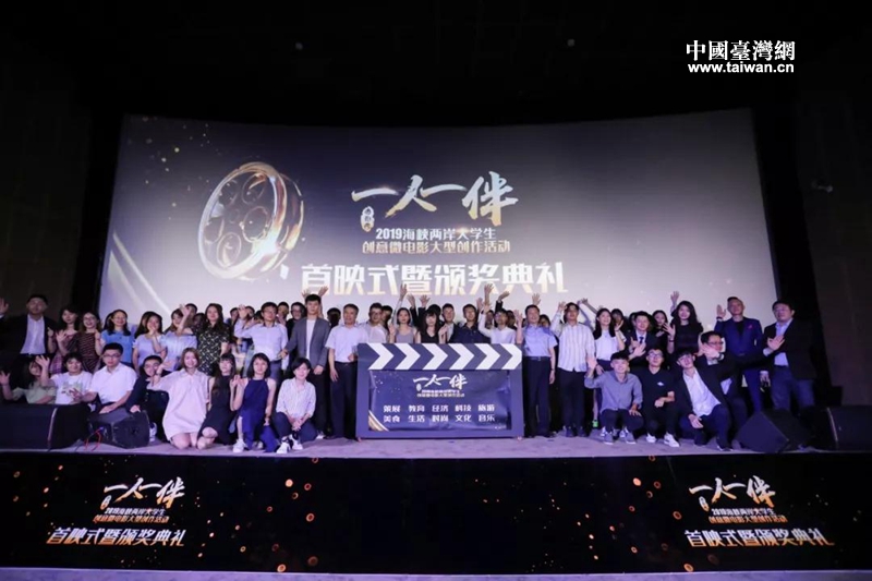中國(guó)臺(tái)灣網(wǎng)7月19日訊 7月15日下午,“一人一伴·微拍秀——2019海峽兩岸大學(xué)生創(chuàng)意微電影大型創(chuàng)作活動(dòng)首映式暨頒獎(jiǎng)典禮”在峨影1958電影城舉行。由60位海峽兩岸青年創(chuàng)作者組成的十大劇組,攜手信步踏上紅毯。