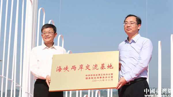 國臺辦交流局局長黃文濤向翠屏區委副書記、區長蘭宏彬授牌(主辦方供圖)