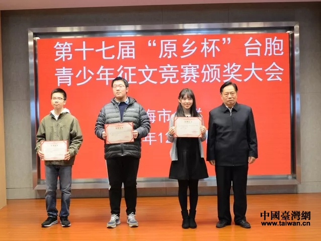 中國臺灣網12月20日訊 日前,“原鄉杯”臺胞青少年征文競賽頒獎大會在上海民主黨派大廈隆重舉行。征文競賽獲獎者、上海及周邊臺商子女學校師生和在滬定居與常住臺胞代表270余人出席。