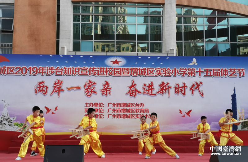 活動把涉臺宣傳教育與區實驗小學體藝節有機結合在一起,將“兩岸一家親”“祖國和平統一”融入到豐富多彩的節目當中,通過演唱、朗誦、展板等形式向全校師生講解了涉臺的有關知識和中央、省、市各級惠及臺胞措施,為全體師生上了一堂人人參與、活潑生動的愛國主義教育課。 (中國臺灣網、廣州增城區臺辦聯合報道)