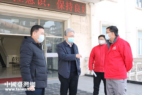 2月20日,遼陽市委常委、統戰部部長高天宇深入位于燈塔市西大窯鎮的臺泥(遼寧)水泥有限公司進行調研,檢查指導疫情防控和復工復產工作。(圖片來源:遼陽市臺辦)