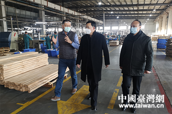 2月20日,青島市臺港澳辦主任紀家棟帶領企業(yè)服務專班和物資保障專班負責人,到西海岸新區(qū)和膠州市走訪復工企業(yè),幫助支持引導臺資企業(yè)有效防控新冠病毒疫情、合理安排恢復生產。(圖片來源:山東省臺港澳辦)
