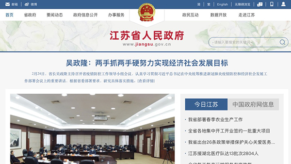 江蘇省人民政府官網(wǎng)截圖。