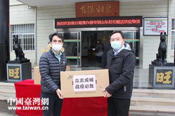 2月26日,山東省委臺港澳辦主任劉淵再赴濟陽區(qū)旺旺集團山東總廠了解臺資企業(yè)復工復產(chǎn)情況,向企業(yè)捐贈部分口罩,表達關心、送去溫暖。(圖片來源:山東省臺港澳辦)