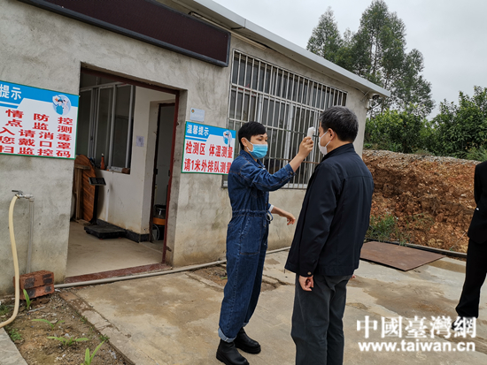 金立泰生態(tài)畜牧養(yǎng)殖場對進出人員進行體溫檢測。 (中國臺灣網(wǎng) 發(fā))
