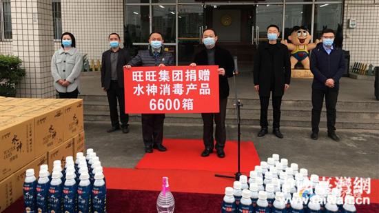內江市旺旺集團隆昌工廠捐贈水神消毒產品助力抗疫。 (中國臺灣網 發)